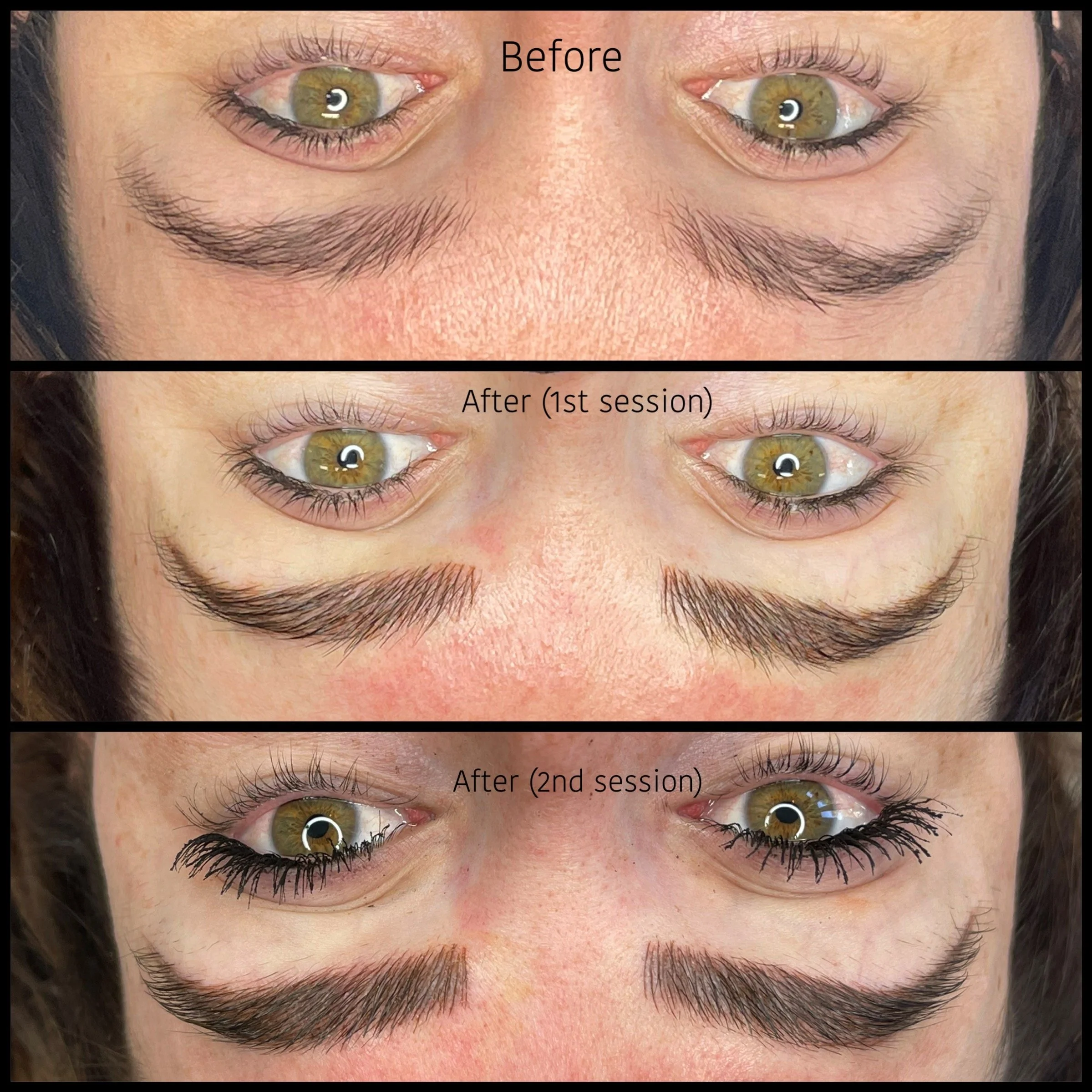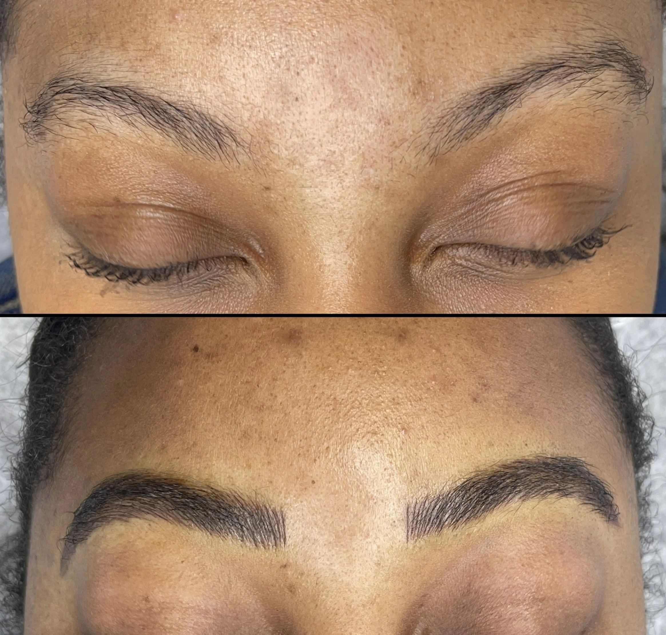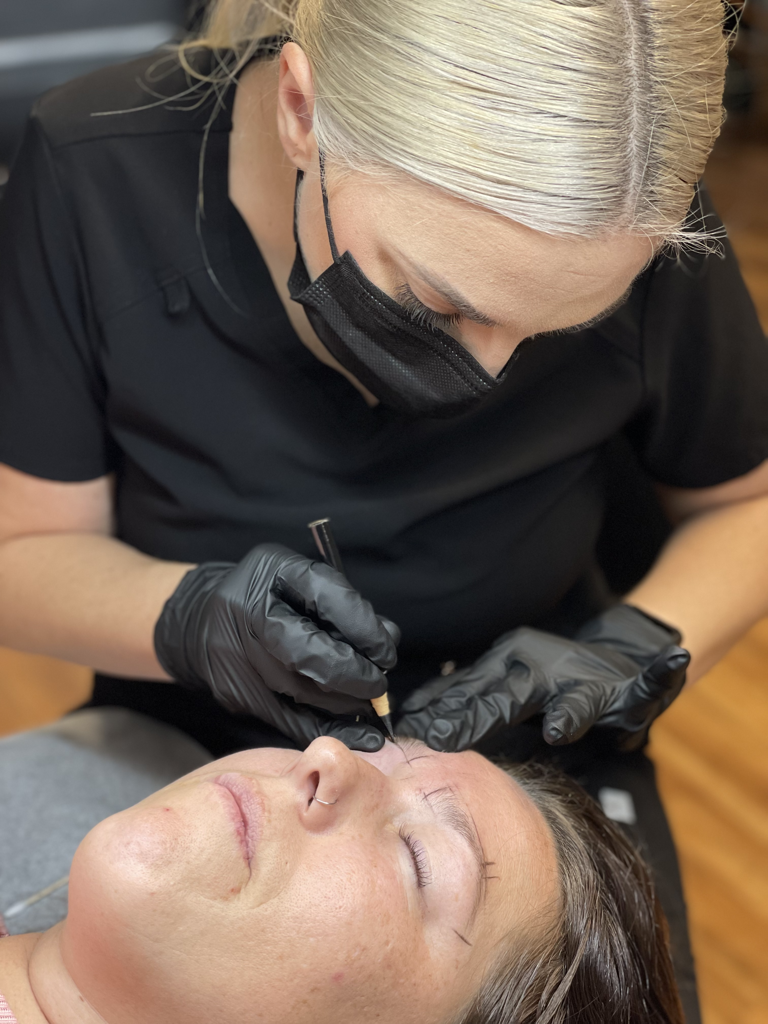 a form of semi-permanent makeup that is done using a unique hand instrument to create a natural hair-like stroke