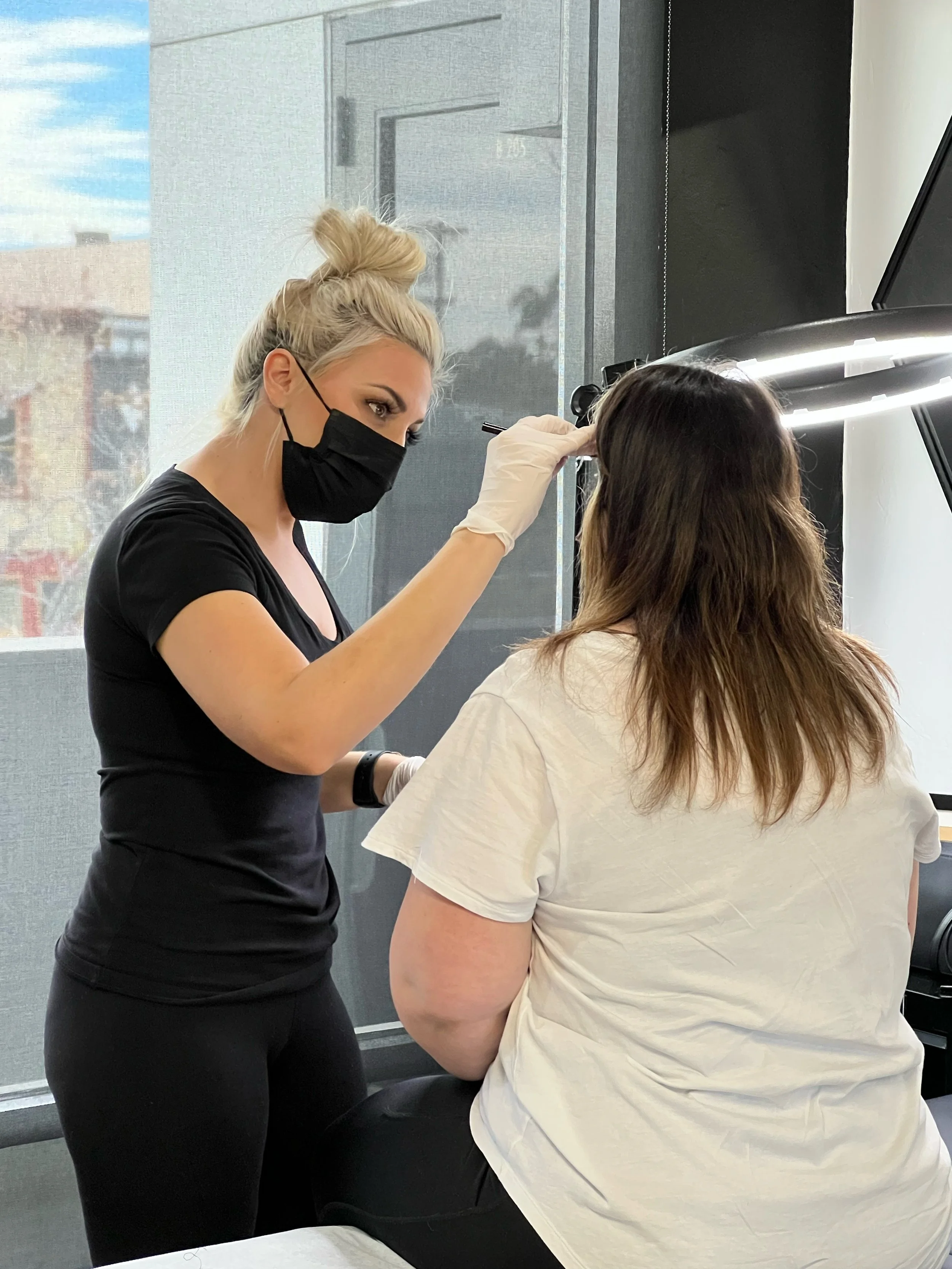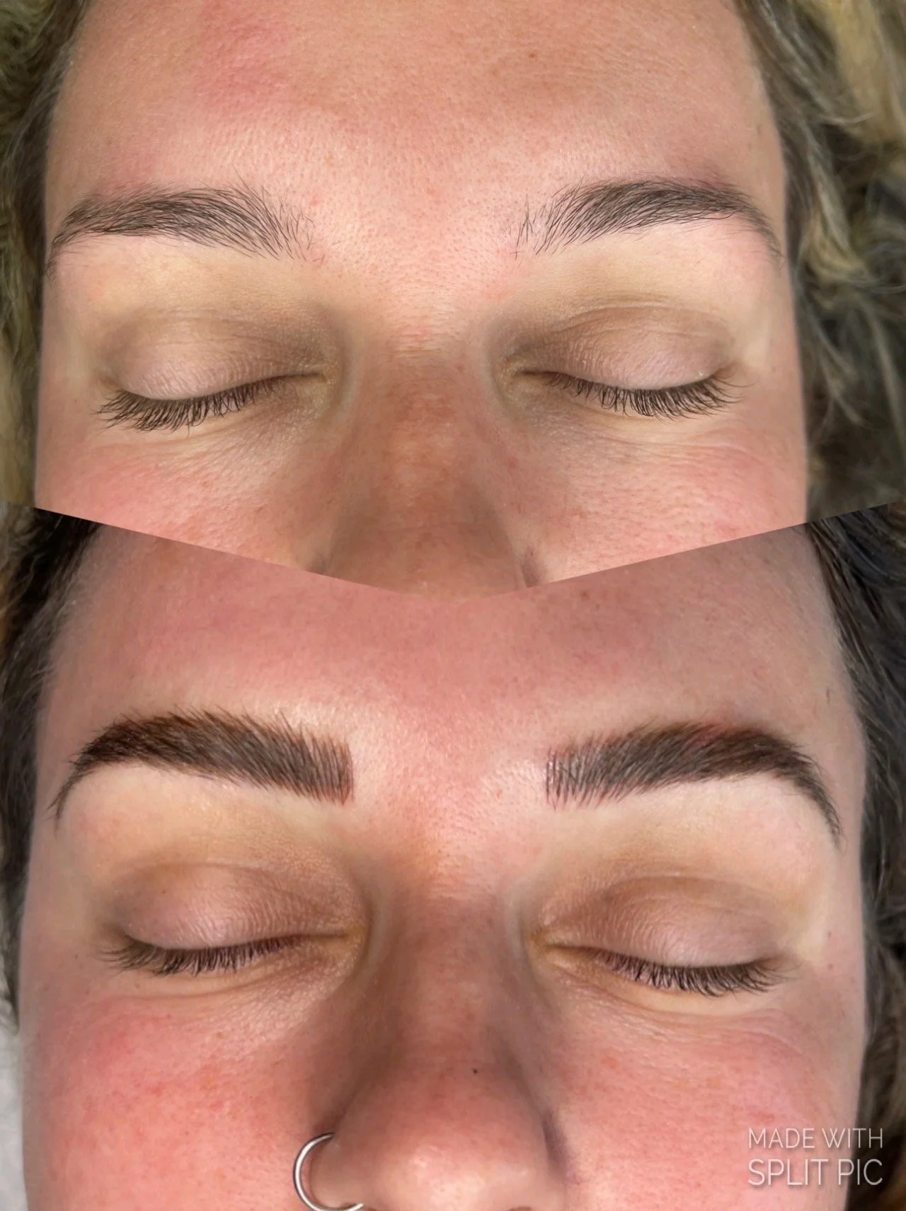 a permanent makeup machine is used to create a more defined and powder looking brow